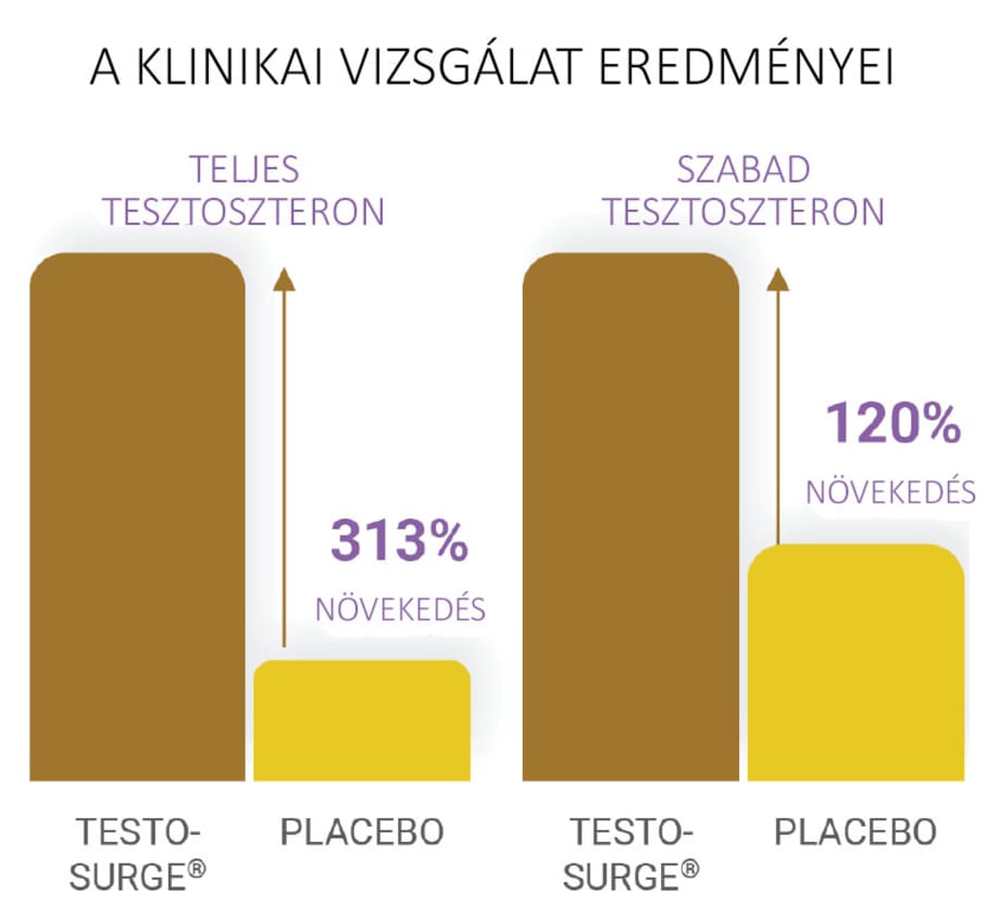 Eredmények: A napi 500 mg Testosurge®-kiegészítés jelentősen befolyásolta a testzsírszázalékot, az össztesztoszteront és a biológiailag elérhető tesztoszteront.